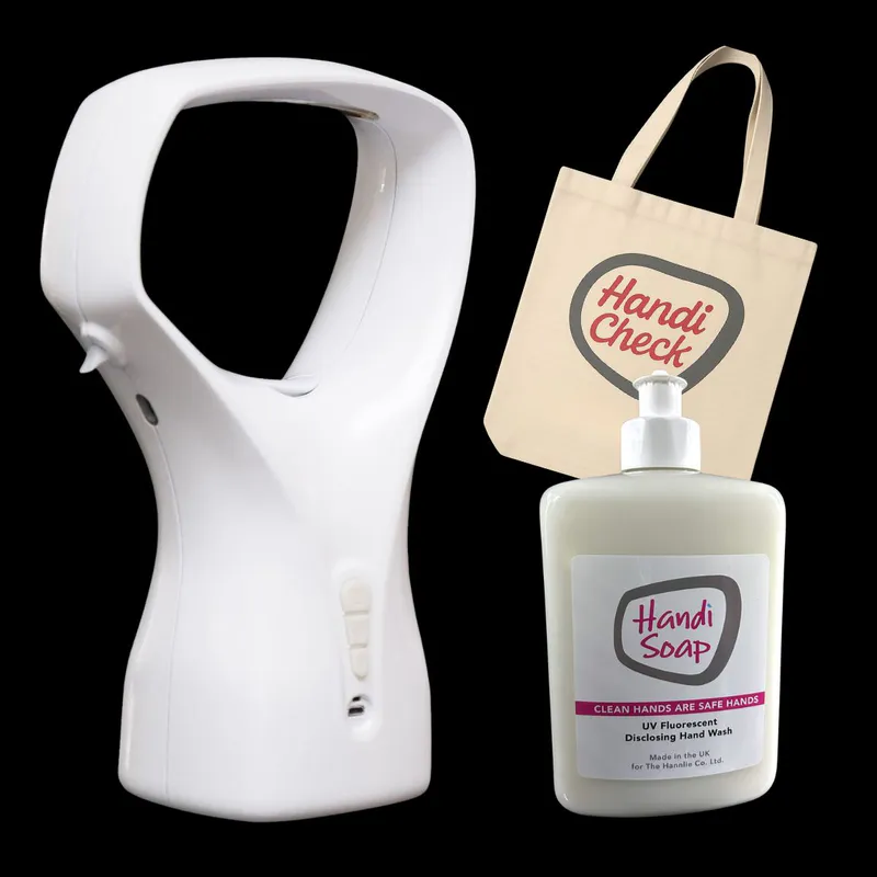 Includes 1 x Handicheck, 1 x HandiSoap and 1 x branded tote bag, giving you a simple and cost effective way to begin visual hand hygiene training.